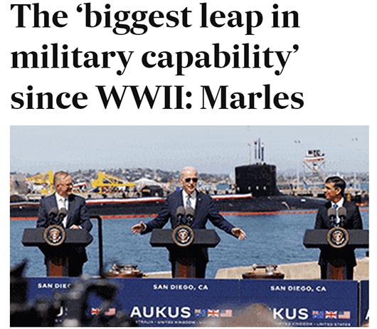16787658857022.jpg AFR지가 ‘오커스 호주 핵잠 구축 계획’을 보도하면서 리차드 말스 국방장관의 ‘2차 대전 이후 최대 국방역량 증진’이란 발언을 인용했다