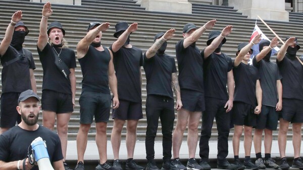16794570499909.jpg 18일 빅토리아 의사당 앞에서 나치 경례를 하는 신나치주의자들