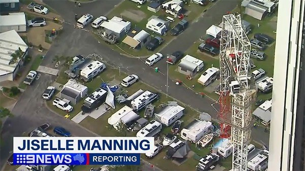 골드코스트 브로드워터 관광공원에 설치된 30톤 크레인이 크리스마스 폭풍으로 크게 손상되며 붕괴 위험이 커졌고, 이로 인해 39개 캠핑 구역의 여행객들이 긴급 대피한 뒤 지금까지도 돌아오지 못하고 있다.