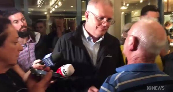 모리슨 총리는 7일 NSW 뉴캐슬 외곽에 있는 에지워스 태번(Edgeworth Tavern)에 예고 없이 방문했다.  이때 이 태번에 있던 한 장애인수당(Disability Support Pension) 수급자가 모리슨 총리에게 다가와 “노인에 대한 지원 수준이 너무 낮다”고 호통했다.