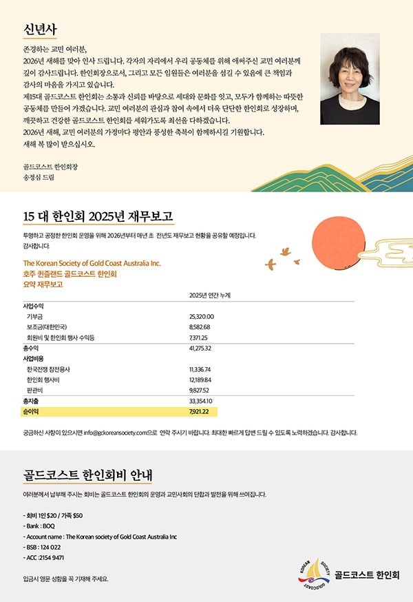 골드코스트 한인회 신년사 및 2025년 재무보고
