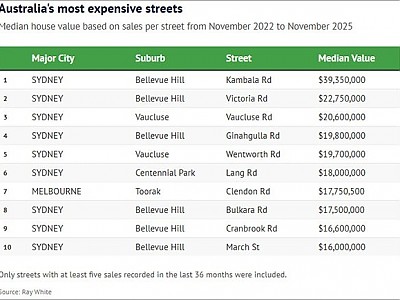 호주에서 가장 비싼 거리와 그곳에 사는 비용