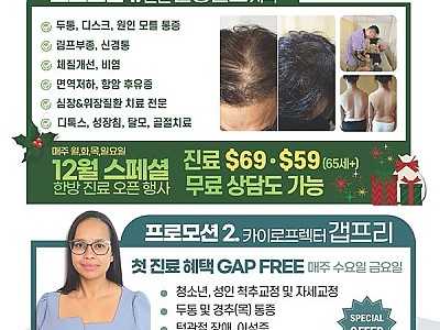 사우스포트 헬스클리닉이 새롭게 변화합니다! 프로모션 1: 전문 한방진료 시작 두통, 디스크, 원인 모를 통증 림프부종, 신경통 체질 개선, 비염 면역 저하, 항암 후유증 심장 & 위장 질환 치료 전문 디톡스, 성…