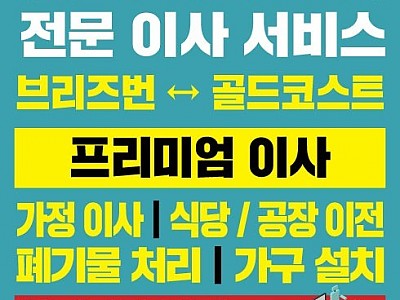 브리즈번 ↔ 골드코스트 전 구간 프리미엄 이사 진행 가정 이사 / 식당·공장 이전 폐기물 처리 / 가구 설치 합리적인 가격 안심하고 맡기세요 견적/문의: 0459 975 410 (영어)