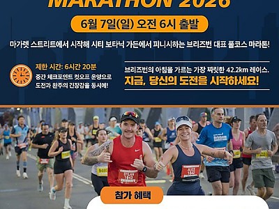 브리즈번 도심을 달리는 가장 큰 축제! EVA AIR BRISBANE MARATHON 2026 6월 7일(일) 오전 6시 출발 마켓 스트리트에서 시작해 시티 보타닉 가든에서 피니시하는 브리즈번 대표 풀코스 마라톤…