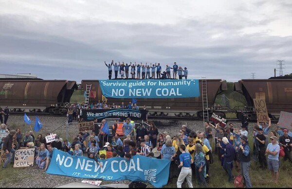 시위 단체인 라이징 타이드(Rising Tide)는 호주에서 모든 신규 석탄 프로젝트의 취소를 요구하면서 시위를 벌였다. 이들 중 20명이 트레일러에서 석탄을 내리기 위해 삽을 들고 기차에 올라탔고 다른 30명은 이를 도왔다.