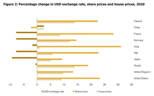 각국 2021년 주가, 집값 상승 부 증식