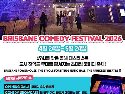 Brisbane Comedy Festival 2026 4월 24일 – 5월 24일 17회를 맞은 올해 페스티벌은 도시 전역을 무대로 펼쳐지는 초대형 코미디 축제! Brisbane Powerhouse, The Ti…
