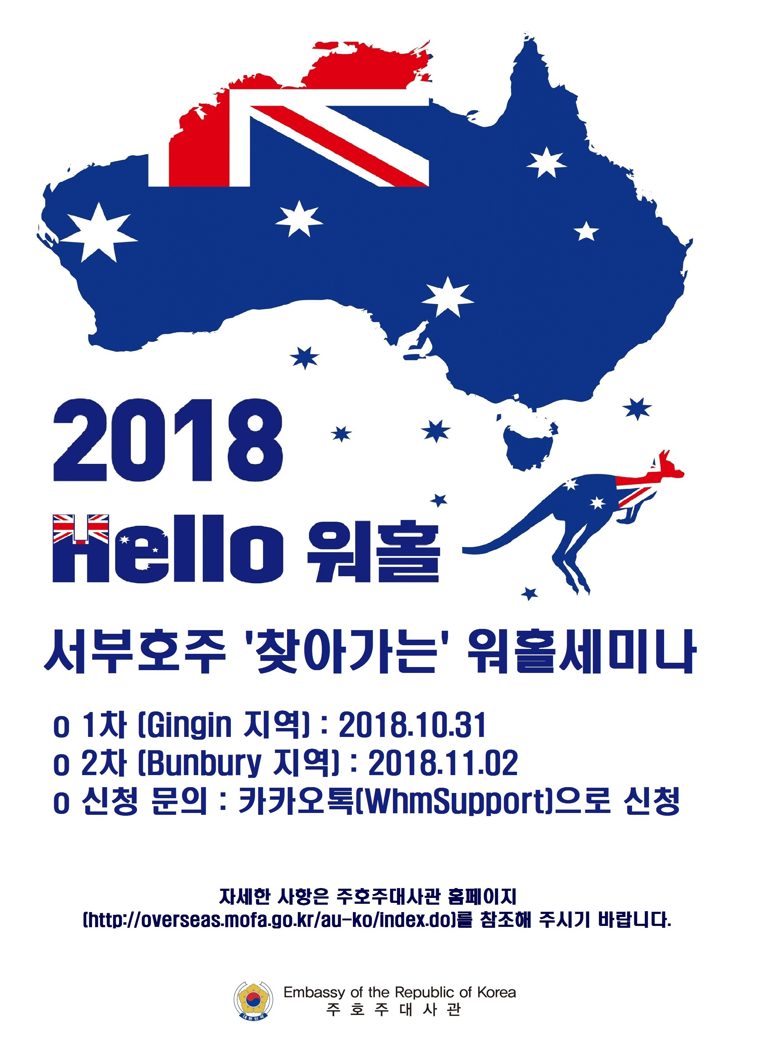 주호주대사관에서는 호주 현지의 사정을 고려해 호주의 주요 도시가 아닌 지방에 거주하고 계신 워홀러들을 대상으로 <'찾아가는' 워홀 세미나>를 개최합니다.